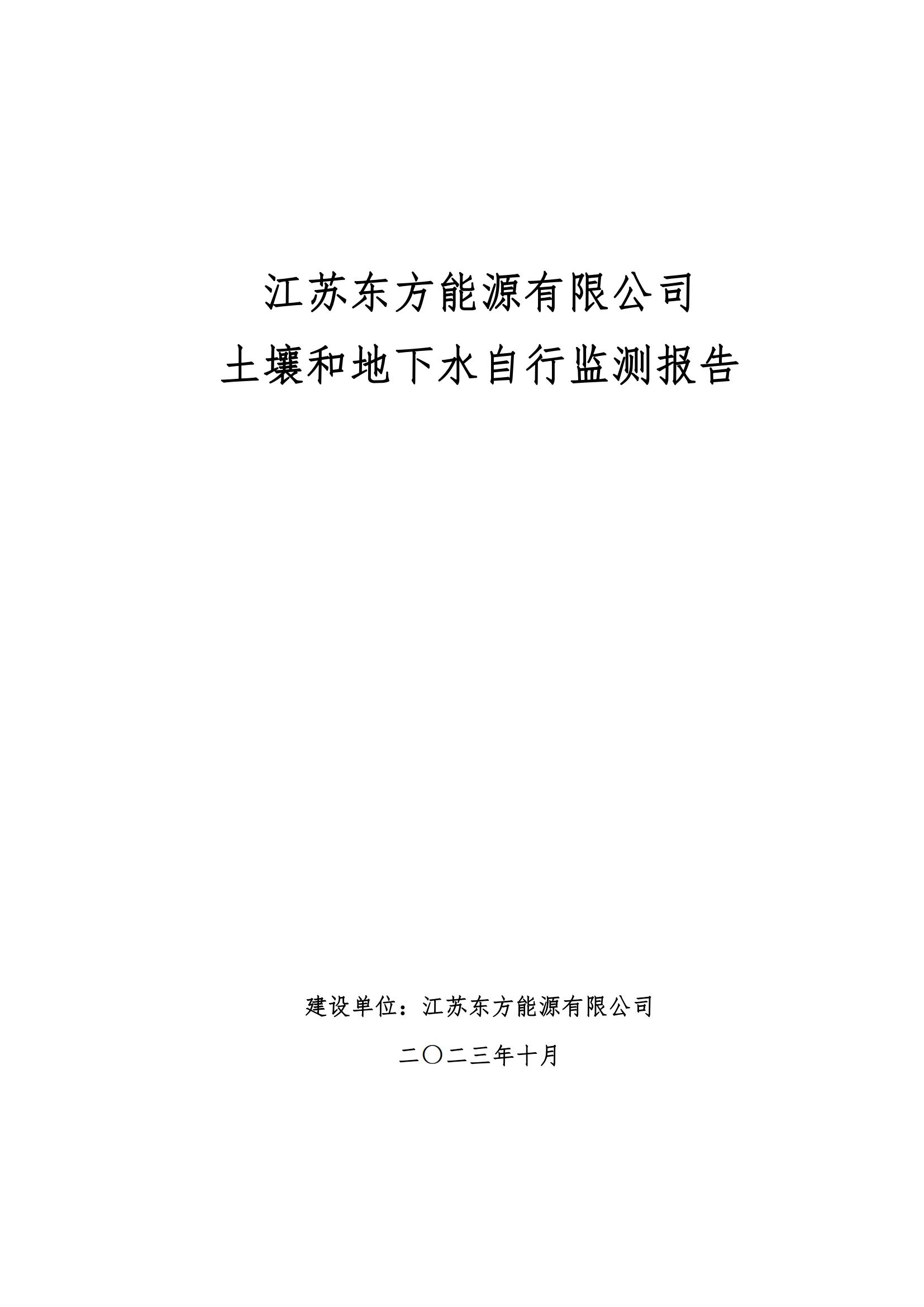 | 江苏东方能源有限公司2023年土壤和地下水自行监测报告 |