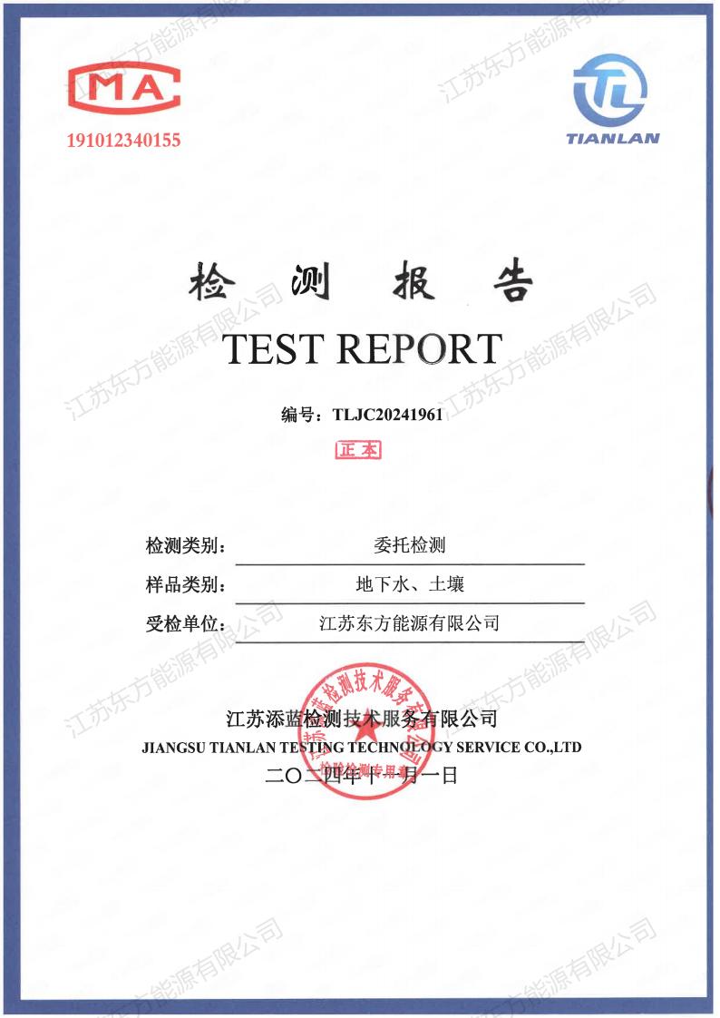 | 江苏东方能源有限公司2024年土壤和地下水自行监测报告 |